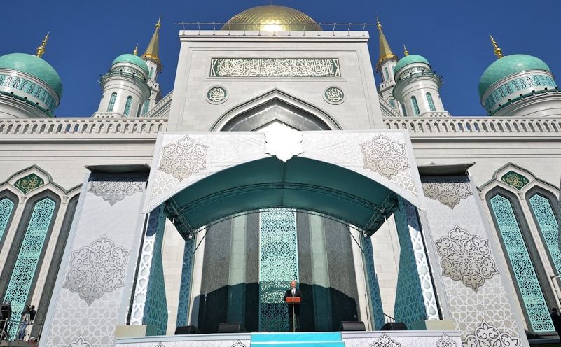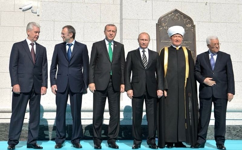 В церемонии открытия Московской соборной мечети приняли участие председатель Совета муфтиев России Равиль Гайнутдин, а также президент Казахстана Нурсултан Назарбаев, палестинский лидер Махмуд Аббас, президент Турции Реджеп Тайип Эрдоган, послы европейских государств.