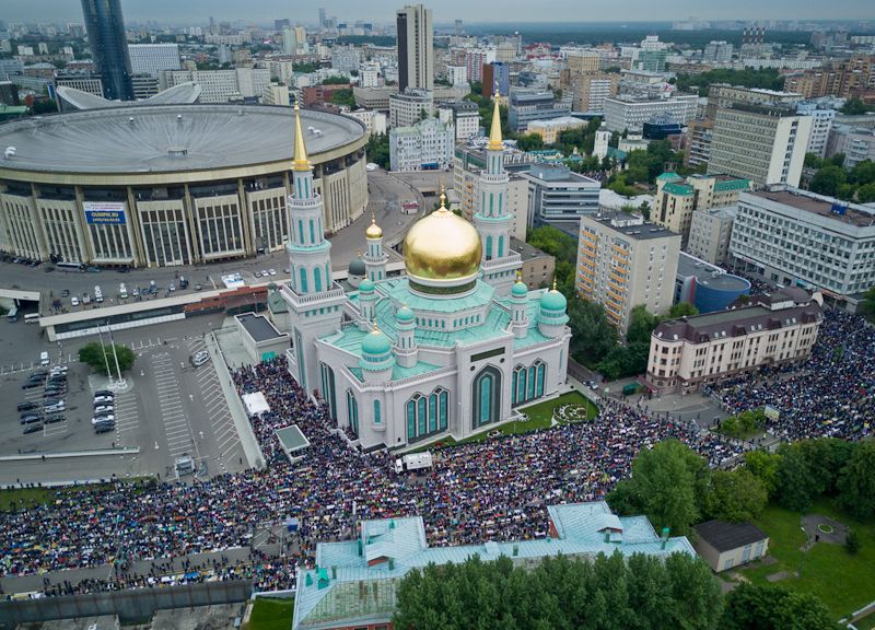 В Московской Соборной мечети и на прилегающих к ней территориях праздничный намаз совершили около 125 тыс. молящихся.